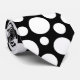 Random placed polka dots, both big and small, make up this striking white on black necktie.
