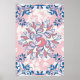 In the center of the artwork, a pink and white Rangoli bird takes center stage, its feathers and wings composed of intricate geometric patterns and delicate floral designs. The bird is surrounded by a blue flower frame, which highlights its beauty and creates a sense of movement and dynamism!