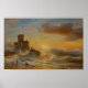 Waves slam against the old Castello sul Mare, where a shipwreck’s broken hull lies shattered on the rocks. Dark clouds roll overhead, and the sea crashes with fury, flooding the harbor with sound and motion. The painting captures a dramatic moment of destruction and survival.