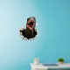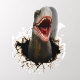 A dinosaur jumps out of the wall in this 3D illustration. Adding a Raptor wall decal to a child's room will make it more interesting for them. If you're making a prehistoric-themed room for children, it appears as though a raptor is invading the room through the design of the walls.