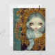 Rapunzel is shown in a tall tower with a muted French country landscape behind her. The window is impossibly ornate in proper Rococo style, and her hair cascades impossibly long down the length of the painting.