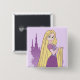 Rapunzel posing with her hair lifted off the ground with the tower silhouette in the background.