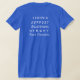 My overall review is that the T-shirt is nice, it fits true to size however the font is significantly smaller than advertised and you can't read it. The printing is unreadable and there is a strain to read it. It does not look like the advertised product. Maybe the shirt color is darker or a larger more visible font should have been used. Photos with and without flash and font is barely legible.