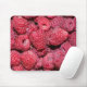 A pile of red yummy raspberry berries. Closeup view. Raspberry symbolizes love, patience, protection and fertility. Gifts for everyone. Mousepad for anyone