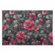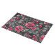 Raspberry, burgundy flowers on dark gray cloth placemat