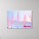 Digital painting of snow-covered birch trees; the snow tinged pink by the setting sun. Text reading "Alaska" also appears. Here in the north it is common to see snow covered trees tinged either pink or orange by the sun hanging low on the horizon.