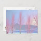 Digital painting of snow-covered birch trees; the snow tinged pink by the setting sun. Here in the north it is common to see snow covered trees tinged either pink or orange by the sun hanging low on the horizon.