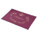 Elegant raspberry pink colored cloth place mat with graphics of a gold tone flourish and crown text area and custom text. Personalize the text to this lovely addition to your dining table.