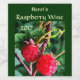 Easily personalize the text on this lovely fruity raspberry wine bottle label featuring two ripe, juicy red raspberries on brown branches surrounded by green leaves.