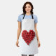 Great color and even though I ordered the kid size, it covers well enough to use during the holidays. I am not a big woman and prefer a shorter apron. I stand 5"6" and the length of the garment goes to mid-thigh. The tie straps fit well at my waist and even though there is no neck strap adjustment, the opening is plenty big enough. I am happy with the size and fit. I am sharing my apron with my 10 year old grandson, too! The color is vibrant and looks good, as shown on the website. The stitching looks strong and reinforced. Photographed is front side and back side of the apron, reinforced straps and coloring. My phone camera may not be the best at showing the details.