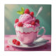Raspberry Ice Cream in a Pink Coffee Cup Ceramic Tile