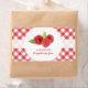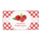 Customizable retro jar labels for homemade raspberry jam, jelly or preserves with fresh raspberries on red and white gingham tablecloth pattern.