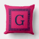 Raspberry, Navy Blue Greek Key #1 Framed Monogram Throw Pillow