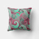 Raspberry Pink and Aqu Paisley Boho Damask Pattern Throw Pillow