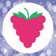 Do you like fun stickers? This sticker has a graphic of a pink raspberry with a green stem.
