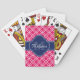 Raspberry Pink Wht Moroccan Pattern Navy Monogram Poker Cards