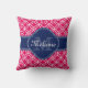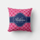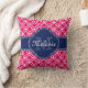 Raspberry Pink Wht Moroccan Pattern Navy Monogram Throw Pillow