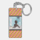 Raspberry Polka Dot Photo Keychain - The front has polka dot stripe down the middle with a raspberry background. The pattern is continued on back, and you add your own photo.