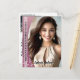 Featuring a raspberry sparkle border with shades of pink glitter and modern fonts to compliment your style, this promo photo postcard provides space to enter your name,, title, platform, quote, and website or social media URL. Upload your images and keep the crown, or add your own icon or logo. For best results, choose high quality images to create a memorable keepsake for your fans and supporters to commemorate your reign.