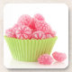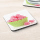 Raspberry tasty candy sweets in green cup cake drink coaster
