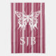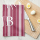 Raspberry Victorian Stripe with Butterfly Monogram Kitchen Towel