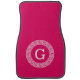Raspberry Wht Greek Key Rnd Frame Initial Monogram Car Mat