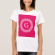 Raspberry Wht Greek Key Rnd Frame Initial Monogram T-Shirt