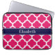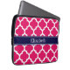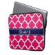 Raspberry Wht Moroccan #5 Navy Blue Name Monogram Laptop Sleeve