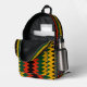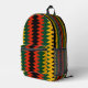 The Rasta Colors Chevron Design features the key colors red, golden yellow, and green in sharp zig-zaggy chevron stripes on a black background. A unique look you won't find anywhere else. When this design is added to a backpack, it is the height of cool, functional Boho fashion. Great for a high school or college student.