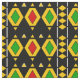 Awesome African geometric design fabric patterned with red, yellow and green diamonds on black