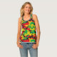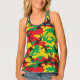 Bold abstract patterned tank top, with a camouflage print in the colours of the Rastafarian flag