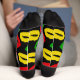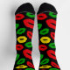 Funky black socks patterned with rasta coloured red, gold and green lipstick kisses