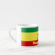 This 6 oz Expresso mug features a Rasta Reggae theme with the flag of Ethiopia of 1897 consisting of horizontal bands of green, yellow and red with a dark Lion of Judah at the center, wearing a crown and holding a cross.