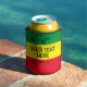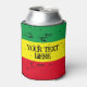 Rastafarian flag reggae music personalized Can Cooler. Custom beverage holder for drinks with rasta flag and your text. Vintage typography template. Also available for bottles. Fun for Birthday party, BBQ, celebrations, wedding and more. Double sided print.