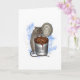 Cute birthday card. Funny cartoon rat with an open can of baked beans.