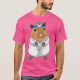 My 11 yo wore adult XL (5’7” 165#). The 8yo is small framed. She wore adult small and tied it in the back. Grandma wore adult large with long sleeve shirt underneath. Tall girl adult medium. Dark haired male adult large. Good quality dark Heather gray, Gildan brand shirt. -it was next up from basic choice and cost about $20 per shirt. Not too thick or thin. Washed and dried well, no major shrinkage. Not see-through. Can wear a bra under it fine. Screen print is just as shown and well done, front and back.