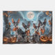 Unleash the spooky spirit with this eerie Halloween design featuring a pack of dogs under a dark, moonlit sky, surrounded by flying bats and glowing pumpkins. Perfect for those who love a touch of frightful fun with their furry friends!