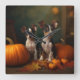 Rat Terrier Puppy Autumn Delight Pumpkin Square Wall Clock