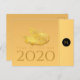Elegant design with golden paper-cut of a rat with fruits (+ the same paper-cut in gray forming drop shadow. Design on horizontal postcard with Large 2020, Year of the Rat and monogram onto black round + same background image in back. You can easily change text (font, color, size and position) by clicking the customize button. Matching greeting card, craft products and more... Perfect for a personalized Chinese New Year of the Rat 2020.