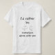 A fun ice-breaker tshirt design with talking heads. The words say :