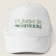 I'd Rather Be Gardening text in two shades of green, with a green leaf.