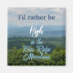 I'd rather be high in the Blue Ridge Mountains! A beautiful and fun photographic travel souvenir magnet featuring a breathtaking view of The Blue Ridge Mountains from high atop Jump Off Rock in the town of Laurel Park, NC, located in the south western North Carolina mountains. Upon this 3,100 foot summit overlook on Echo Mountain near Hendersonville in Henderson county North Carolina is a panoramic scenic mountain view. All text may be personalized. This is original travel photography by JLW_Photography.