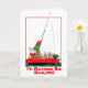 Nautical Christmas card of Santa in his sailboat with his reindeer crew delivering Christmas gifts to his sailing and boating friends. Because He would Rather Be Sailing!