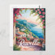 This watercolor postcard captures the enchanting beauty of Ravello, a jewel of the Amalfi Coast. The design features sweeping views of the coastline, charming villas, and lush gardens, all rendered in soft, vibrant tones. A perfect keepsake for lovers of Italian landscapes and artistic travel illustrations.