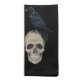 A dark gothic halloween image featuring a skull, a beautiful raven, placed in a vintage frame on a back ground of black and white stripes dressed with a grunge texture. © WickedlyLovely
