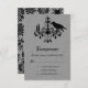A black raven and crystal chandelier decorates this RSVP on a gray linen background. The back is further decorated with a spider damask pattern, giving it an eerie Halloween feeling. This is the coordinating RSVP for the Raven and Spider Damask Gray Linen Wedding Invitation. It is shown on the basic paper; however, I recommend the weight and texture of the linen paper.