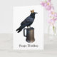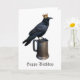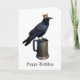 A raven wearing a crown perched on a pewter stein. A distinctive medieval birthday card.