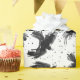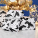 An original ink painting of black ravens in flight, painted in loose and strongly flowing brushstrokes, surrounded by splatters of black ink, a pattern depicting freedom and creative self-expression.