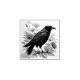 This floral artwork features a raven on a branch surrounded by flowers. A striking juxtaposition of bright and dark of nature's beauty.