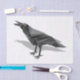 A Raven drawn using geometric triangles in various shades of grey. The raven has a red eye. The background is white, giving a bold contrast to the bird.